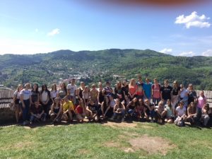 Bol krásny slnečný deň 03. 05. 2018 a žiaci II.T a III.T pod vedením pani učiteliek Mičurovej a Gilániovej sa zúčastnili v rámci predmetu Podnikanie v cestovnom ruchu vyučovania v mestách Banská Štiavnica a Kremnica. Počas celej trasy a v jednotlivých mestách sme my tretiaci absolvovali sprievodcovanie ako predprípravu na sprievodcovský kurz v štvrtom ročníku. Prvou našou zastávkou bol geografický stred Európy v Kremnických baniach. Pri príležitosti vzniku Slovenskej republiky tu položili aj základný kameň Slovenskej štátnosti. Druhou zastávkou bolo mesto Kremnica, sprievodcovanie po kultúrnych pamiatkach v meste a odborný výklad v Mincovni Kremnica. Zaujímavý lektorský výklad nás preniesol do minulých čias, kedy sa mince razili iba zo zlata a striebra. Mali sme možnosť porovnať technické výdobytky v minulosti a dnes. Následne sme sa presunuli do botanickej záhrady Strednej odbornej školy lesníckej v Banskej Štiavnici, kde sme obdivovali bohatú výsadbu a oboznámili sa s aktivitami uskutočnenými ku Dňu zeme 22. 04. Po zaujímavej prehliadke historickej časti Banskej Štiavnice sme sa naobedovali a pokračovali sme v našom programe. Absolvovali sme výstup na Kalváriu v Banskej Štiavnici z roku 1744 spojenú s obohacujúcim výkladom lektora. Tvorí ju 22 samostatných sakrálnych stavieb v barokovom štýle. Poslednou našou zastávkou bola Štôlňa Andrej v Kremnici. Počas 60. minút sme absolvovali dobrodružnú prechádzku časom – videli sme exponáty z 20. až 17. storočia, oboznámili sa s históriou dobývania zlato-striebornej rudy, z ktorej sa v 14. a 15. storočí vyrobila podstatná časť zlata v Európe. Štôlňou sme prechádzali v prilbách s „čelovkami“ a ručnou lampou. Najväčším zážitkom pre nás bolo, keď sme zhasli čelovky a pán lektor nám rozprával strašidelné príhody z bane. Po prehliadke sme sa vrátili späť do Žiliny cez Rajec, kde nám spríjemnilo trasu sprievodcovanie žiačok III.T triedy.
