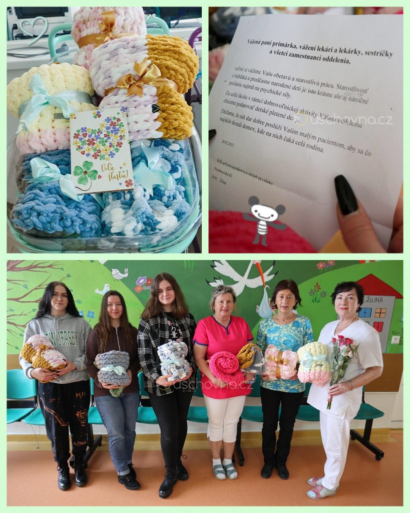 Dňa 20.02.2023 študentky spolu s Ing. Boocovou odovzdali za našu školu v rámci dobrovoľníckych aktivít detské pletené deky pre predčastniatka a novorodencov na novorodeneckom oddelení Fakultnej nemocnice s poliklinikou v Žiline.